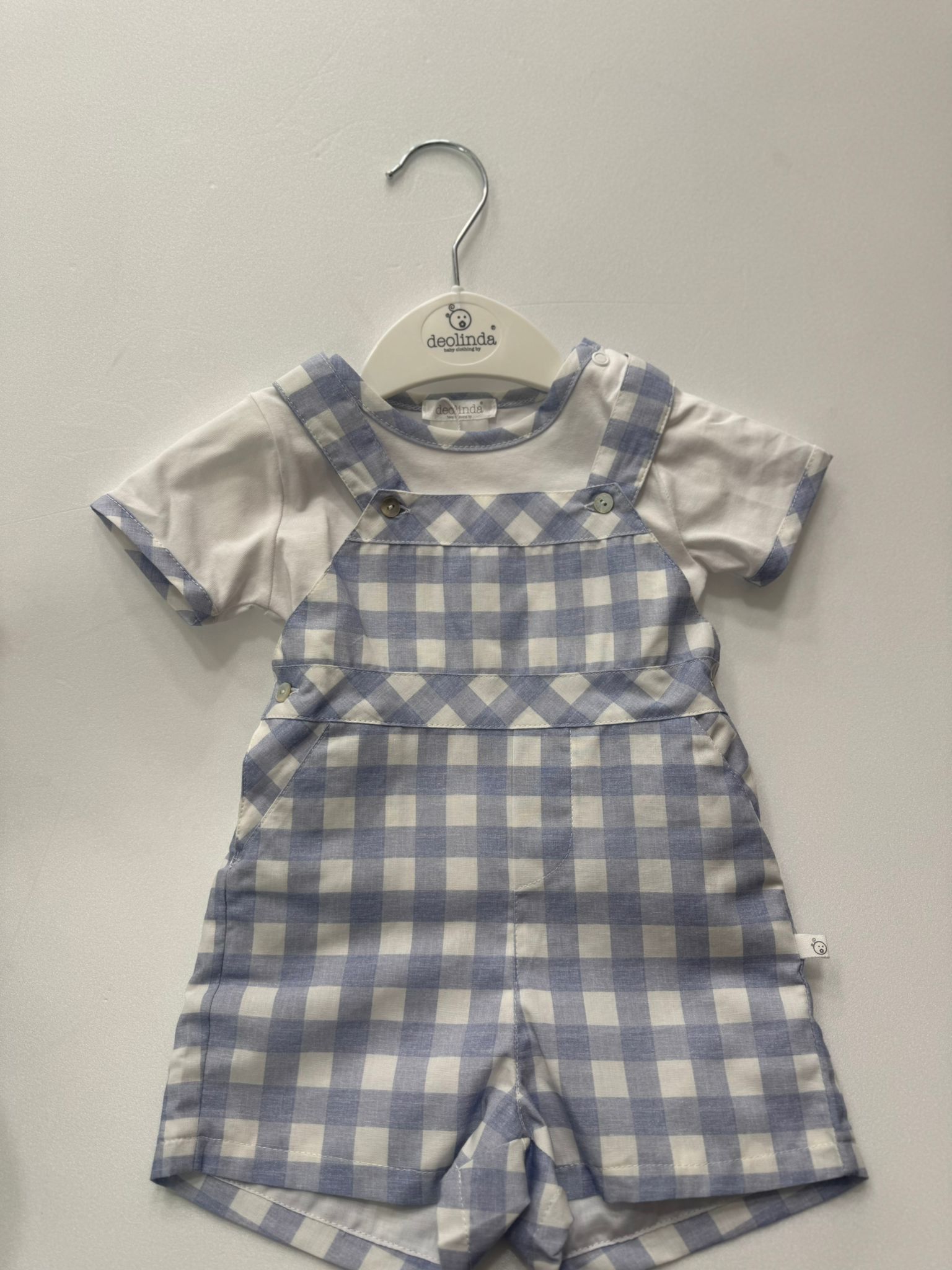 Completo neonato Deolinda – Salopette a quadretti azzurri con t-shirt
