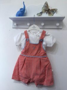 Completo in salopette bimbo a quadri rosso – Deolinda