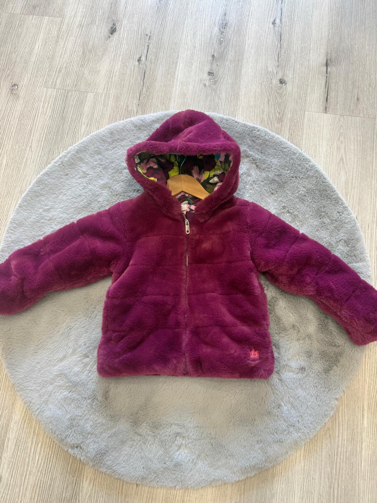 Giacca firmata Tuc Tuc, realizzata in soffice pelliccia sintetica per garantire massimo calore e comfort durante le giornate più fredde. Il design originale del brand si esprime nei dettagli curati, come il cappuccio con fodera interna a fantasia floreale, elemento distintivo e vivace in pieno stile Tuc Tuc.