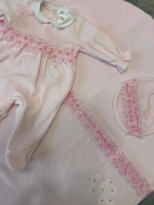 elicatissimo completo nascita per neonata realizzato in morbida ciniglia rosa, ideale per avvolgere la tua bambina in un abbraccio caldo e confortevole fin dai primi giorni di vita. Un set raffinato, curato nei minimi dettagli, perfetto per corredino o come regalo nascita.